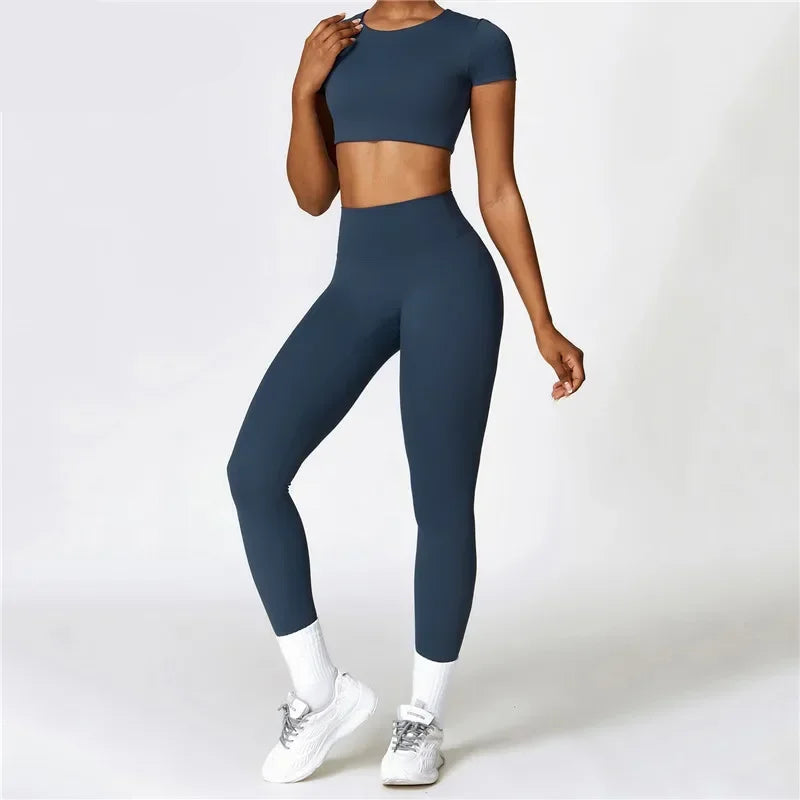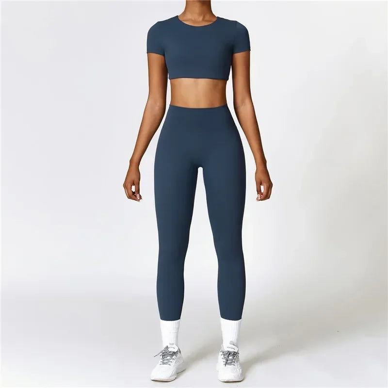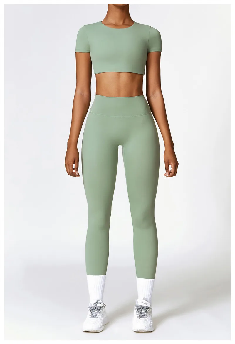 Package included: 1X Yoga short sleeve t-shirts +pants set